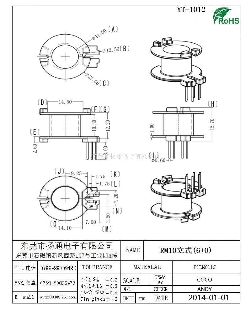 RM10变压器骨架RM10电木骨架RM10高频骨架 立式6+0P YT-1012