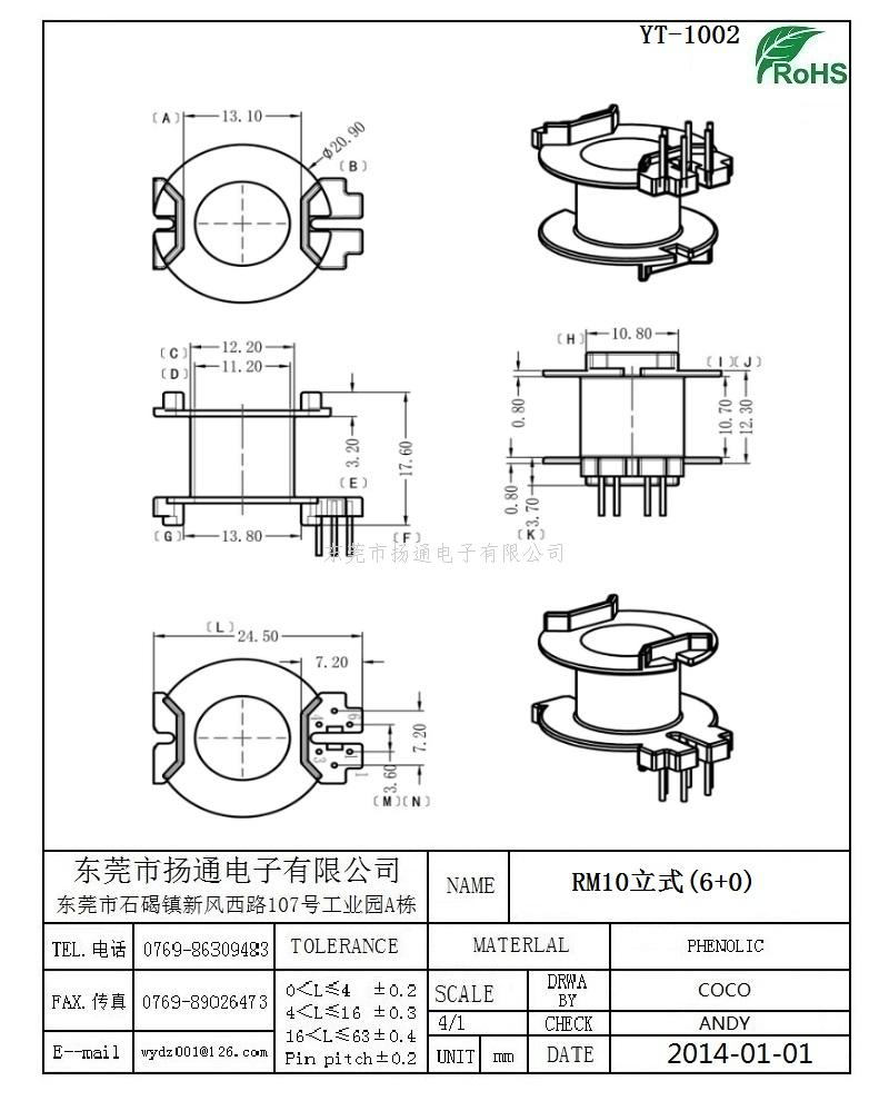 [下一个:RM9变压器骨架RM9电木骨架RM9高频骨架 立式4+0P YT-0901-1A]
