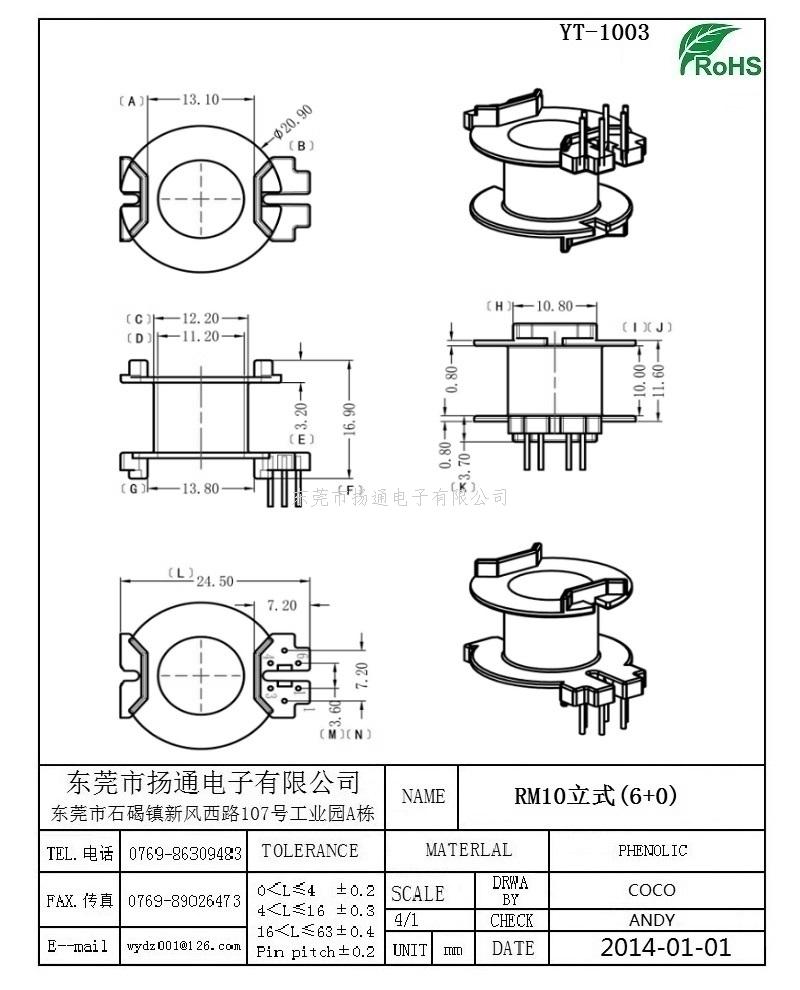 RM10变压器骨架RM10电木骨架RM10高频骨架 立式6+0P YT-1003