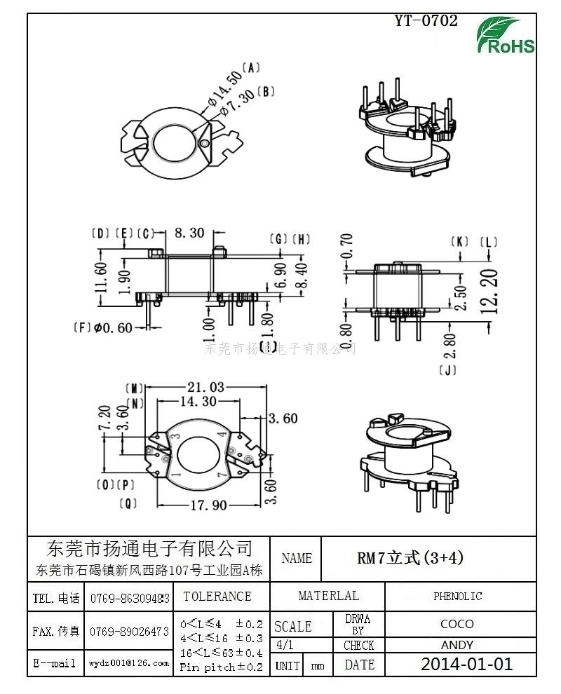 RM7变压器骨架RM7电木骨架RM7高频骨架 立式3+4P YT-0702