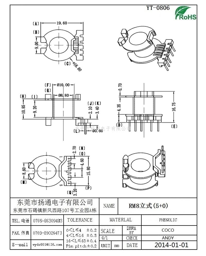 RM8变压器骨架RM8电木骨架RM8高频骨架 立式5+0P YT-0806