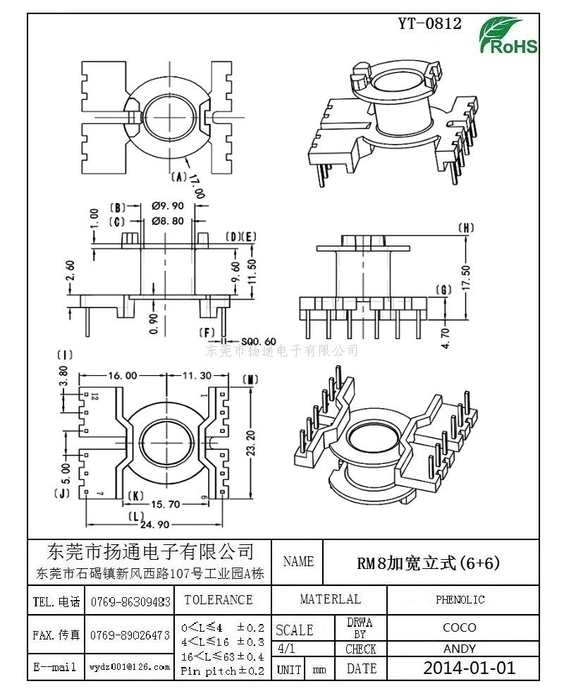 RM8变压器骨架RM8电木骨架RM8高频骨架 加宽立式6+6P YT-0812