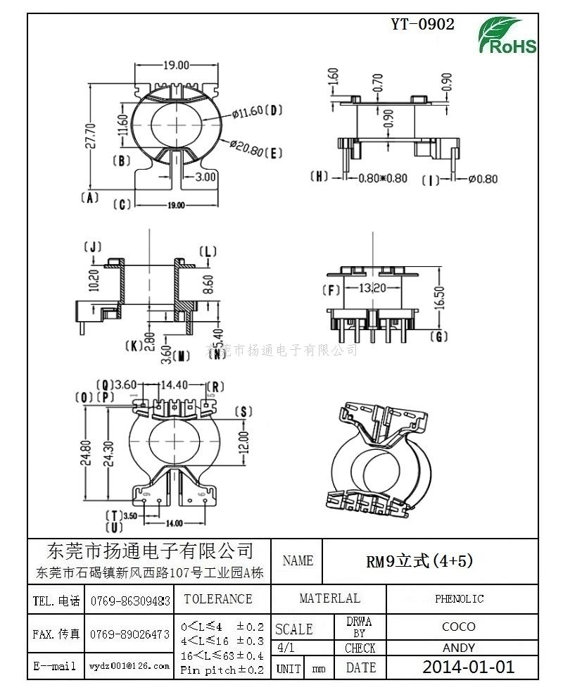 RM9变压器骨架RM9电木骨架RM9高频骨架 立式4+5P YT-0902