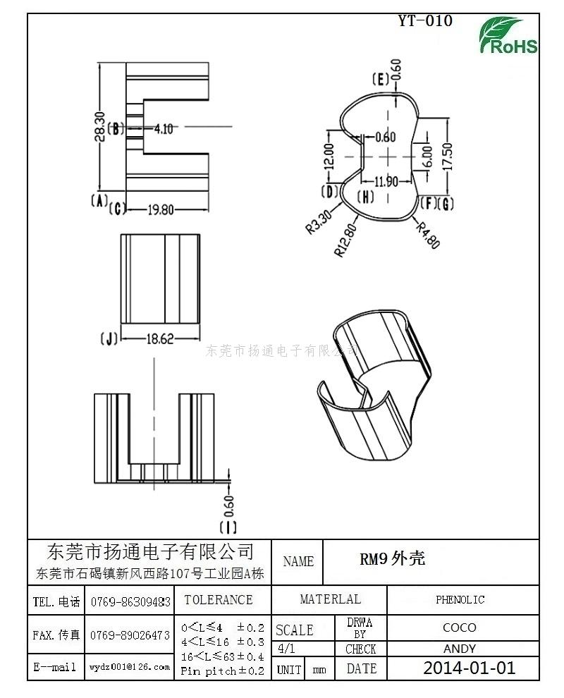 RM9骨架外壳RM9变压器骨架外壳 YT-010 电木骨架外壳