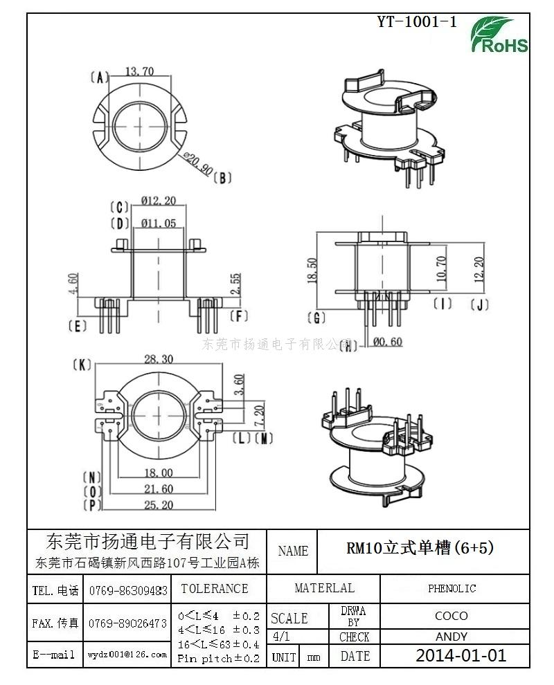 [下一个:RM10变压器骨架RM10电木骨架RM10高频骨架 立式5P YT-1015-1]