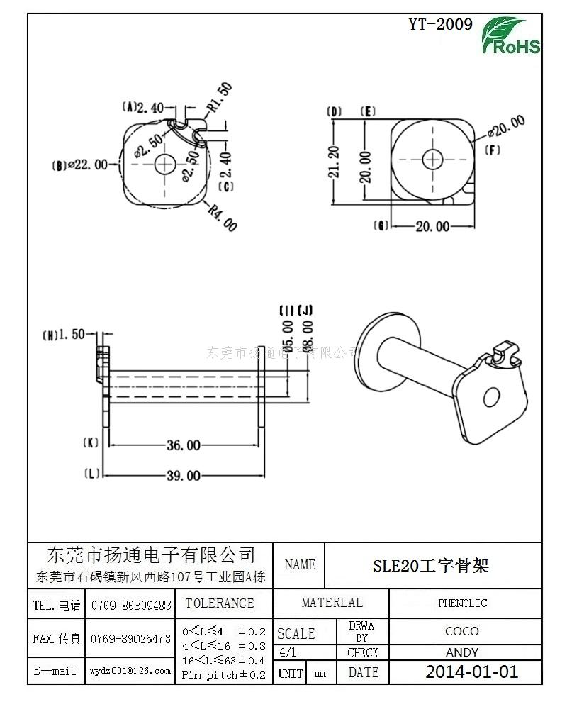 SLE20变压器工字骨架电木骨架 SLE20高频骨架电源骨架 SLE20工字骨架 YT-2009