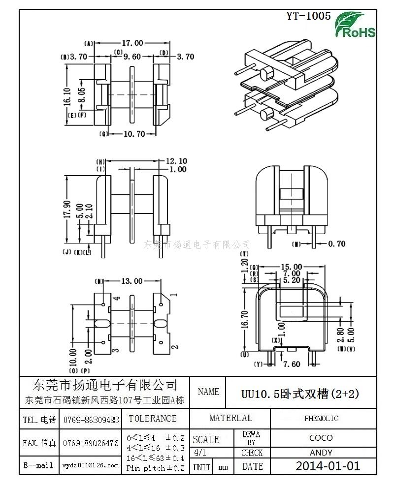 UU10.5变压器骨架UU10.5电木骨架UU10.5高频骨架 卧式双槽骨架 YT-1005