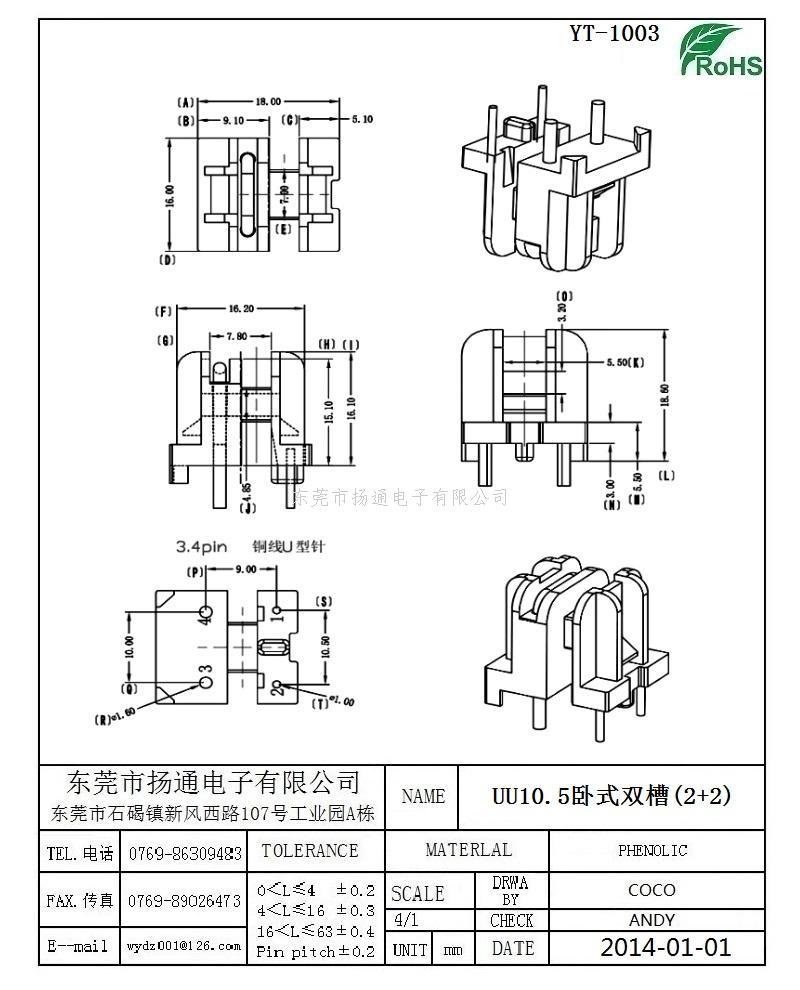 [下一个:UU10.5变压器骨架UU10.5电木骨架UU10.5高频骨架 卧式双槽骨架 YT-1005]