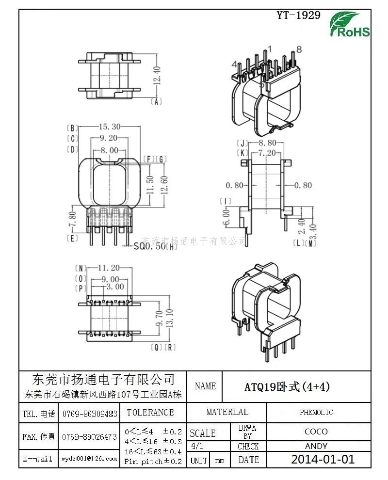 ATQ19电木骨架ATQ19变压器骨架ATQ19电源骨架 卧式4+4P YT-1929