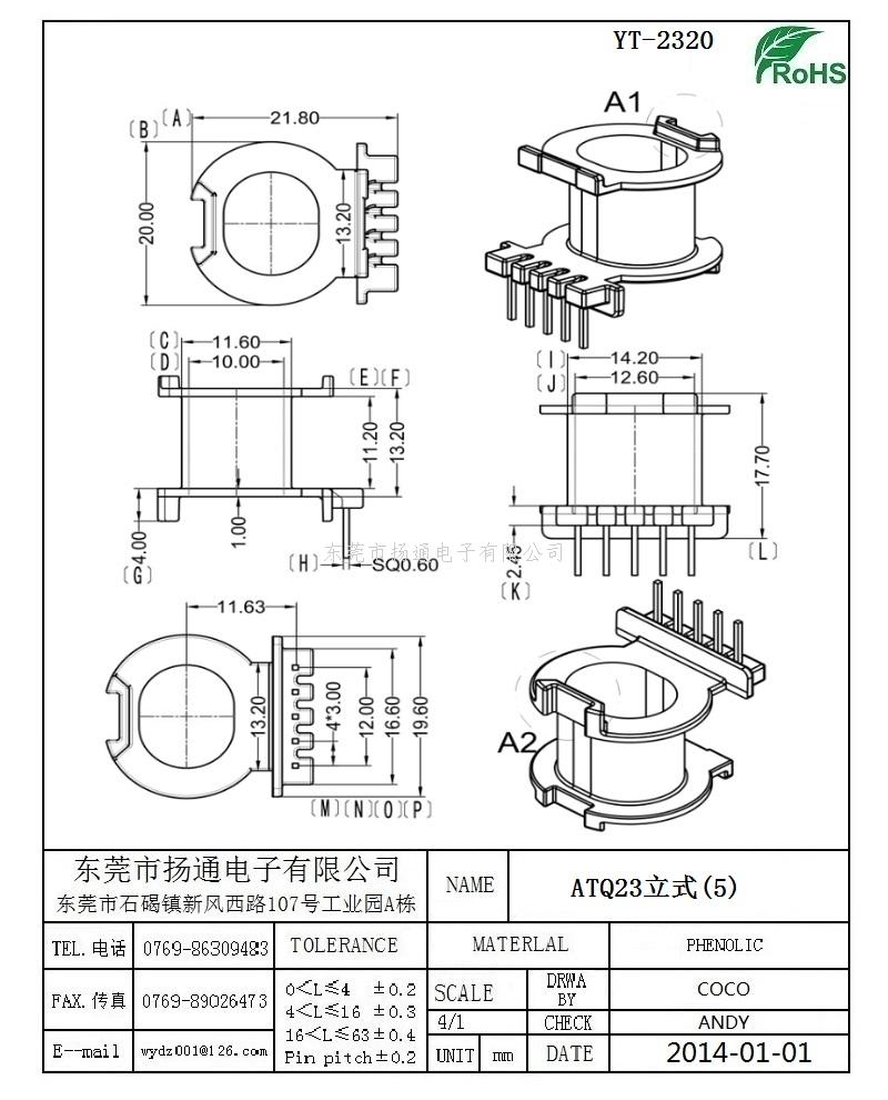 ATQ23电木骨架ATQ23变压器骨架ATQ23电源骨架 立式5P YT-2320