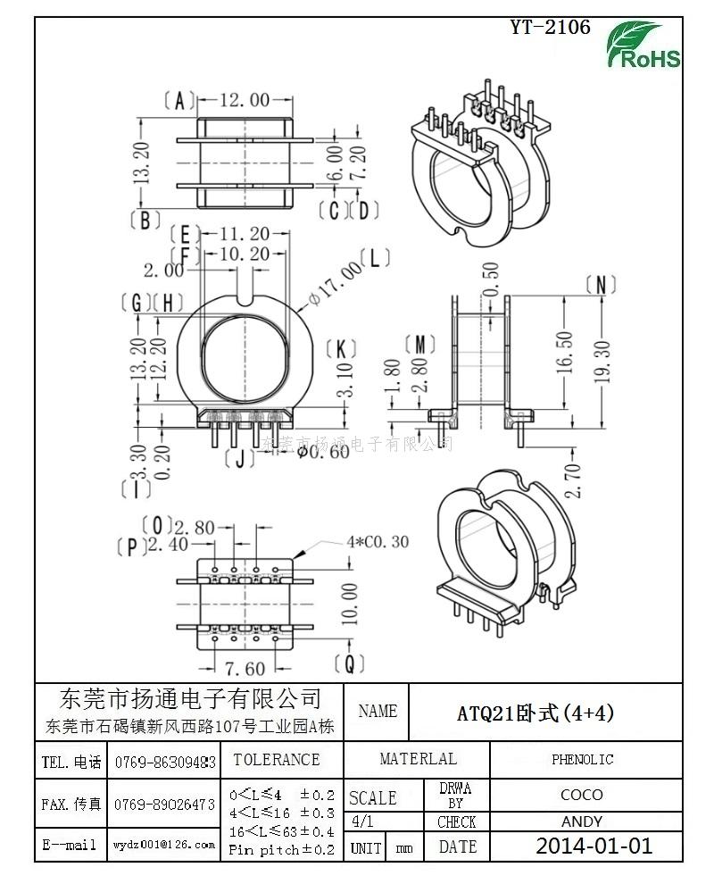 [下一个:ATQ17电木骨架ATQ17变压器骨架ATQ17电源骨架 卧式4+4P YT-1713]