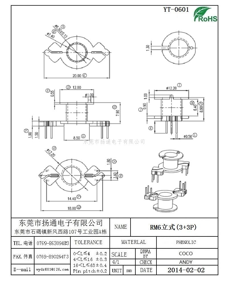 RM6变压器骨架RM6电木骨架RM6高频骨架 立式3+3P YT-0601