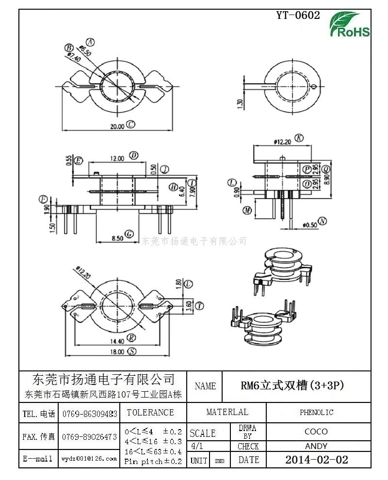 RM6变压器骨架RM6电木骨架RM6高频骨架 立式双槽3+3P YT-0602