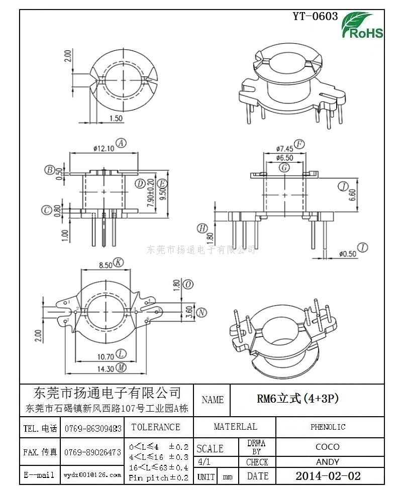 [下一个:RM6变压器骨架RM6电木骨架RM6高频骨架 立式双槽3+3P YT-0602]