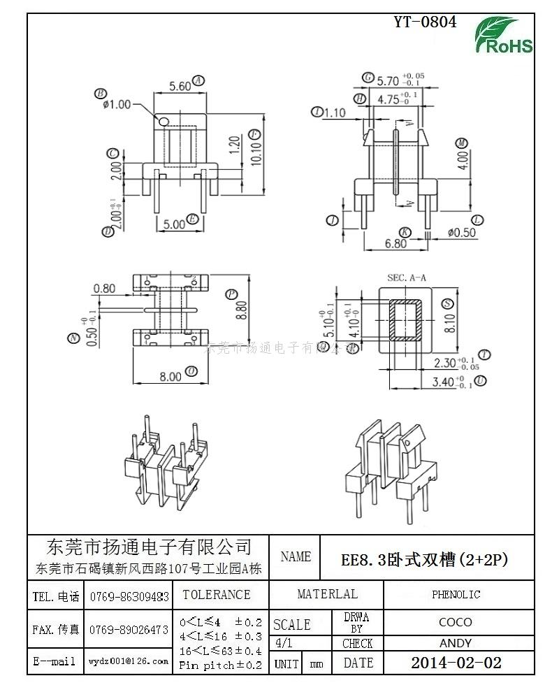 高频骨架 卧式双槽2+2P YT-0804