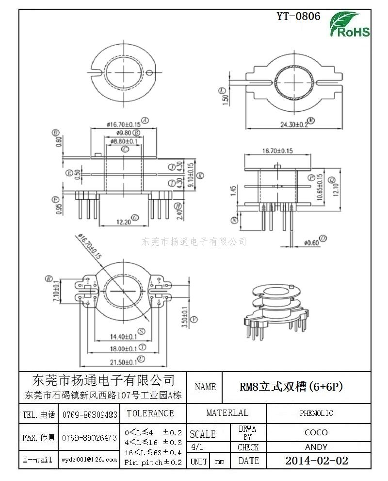 RM8变压器骨架RM8电木骨架RM8高频骨架 立式双槽6+6P YT-0806