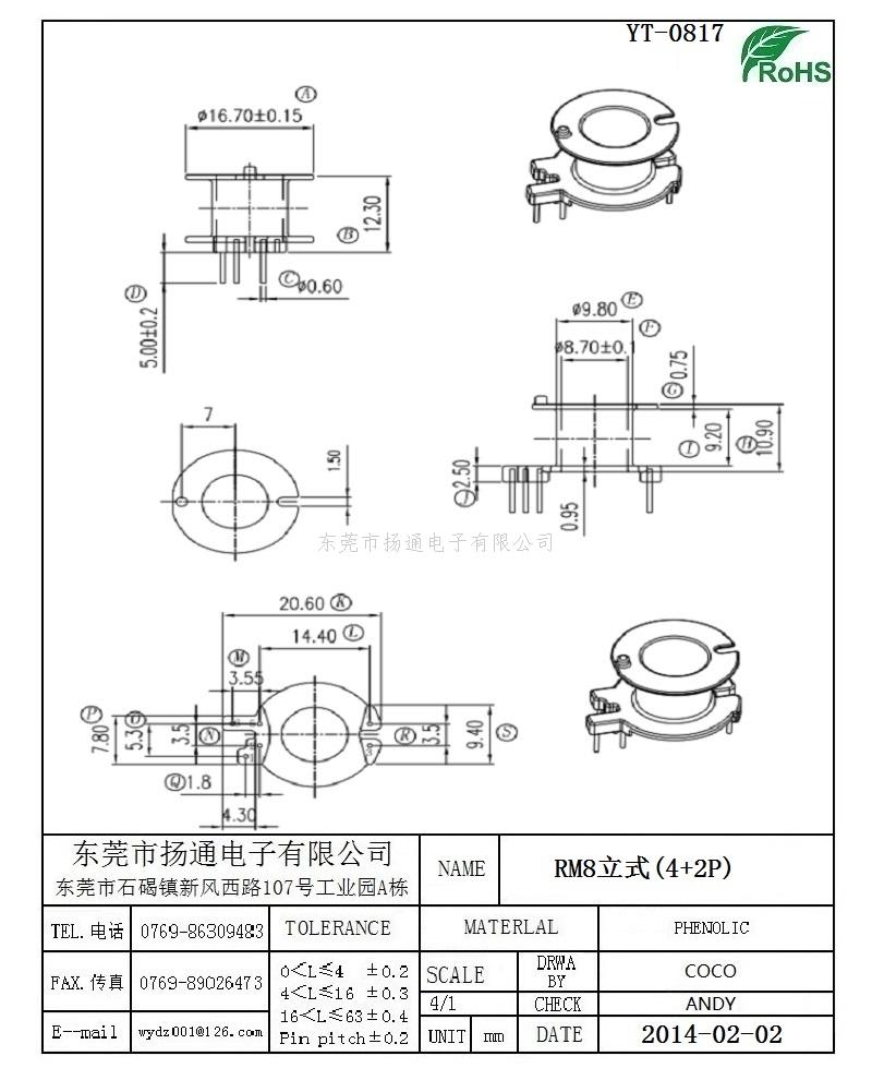 [下一个:RM8电源骨架RM8电木骨架RM8变压器骨架 卧式骨架 电源骨架 CAP骨架 YT-0816B]