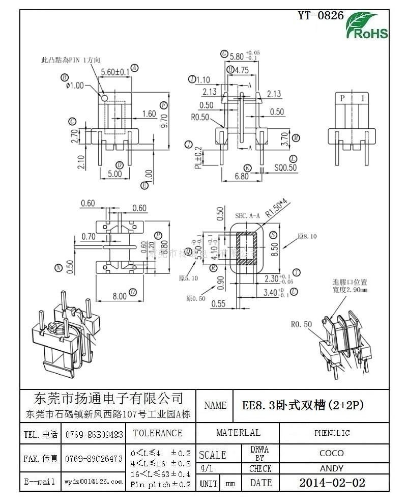 EE8.3变压器骨架EE8.3电木骨架EE8.3高频骨架 卧式双槽2+2P YT-0826