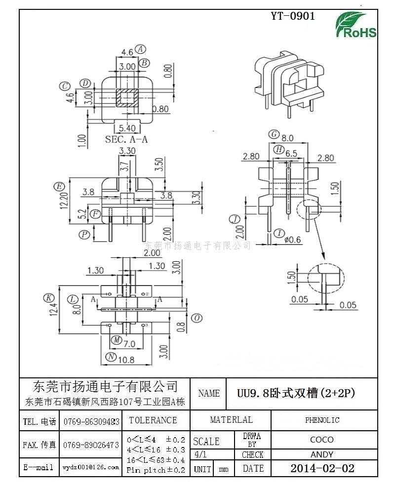 [上一个:UU9.8变压器骨架UU9.8电木骨架UU9.8高频骨架 卧式双槽2+2P YT-0902]