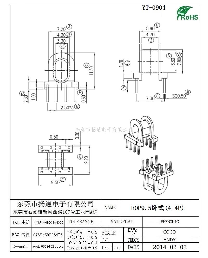 EOP9.5变压器骨架EOP9.5电木骨架EOP9.5高频骨架 卧式4+4P YT-0904