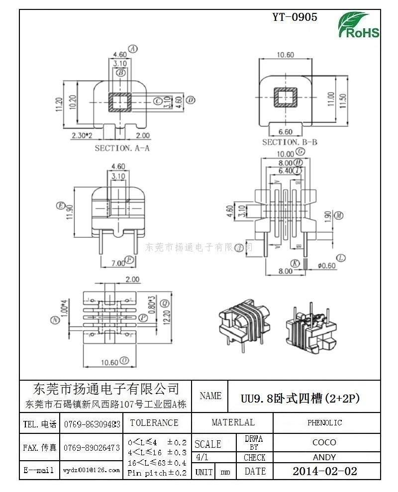 [上一个:UU9.8变压器骨架UU9.8电木骨架UU9.8高频骨架 卧式双槽2+2P YT-0906]