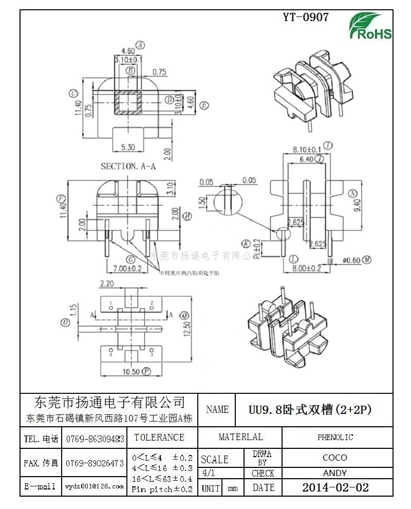 [上一个:UU9.8变压器骨架UU9.8电木骨架UU9.8高频骨架 卧式双槽2+2P YT-0908]