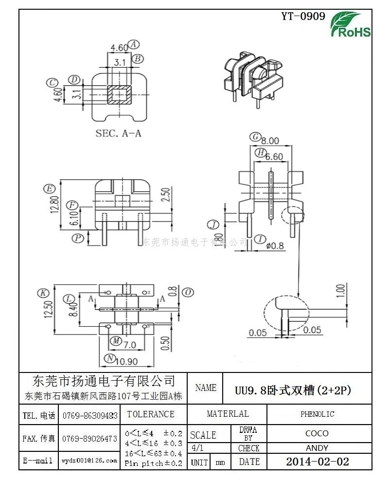 [上一个:UU9.8变压器骨架UU9.8电木骨架UU9.8高频骨架 卧式双槽2+2P YT-0910]