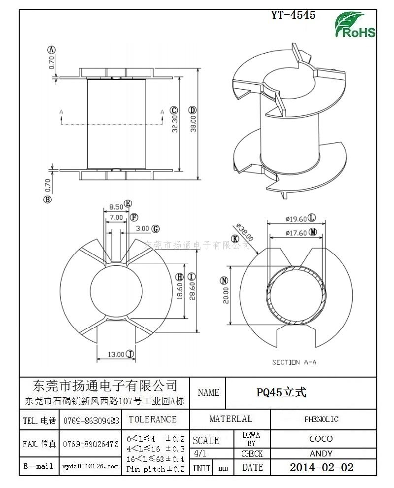 PQ45变压器骨架PQ45电木骨架PQ45高频骨架 YT-4545