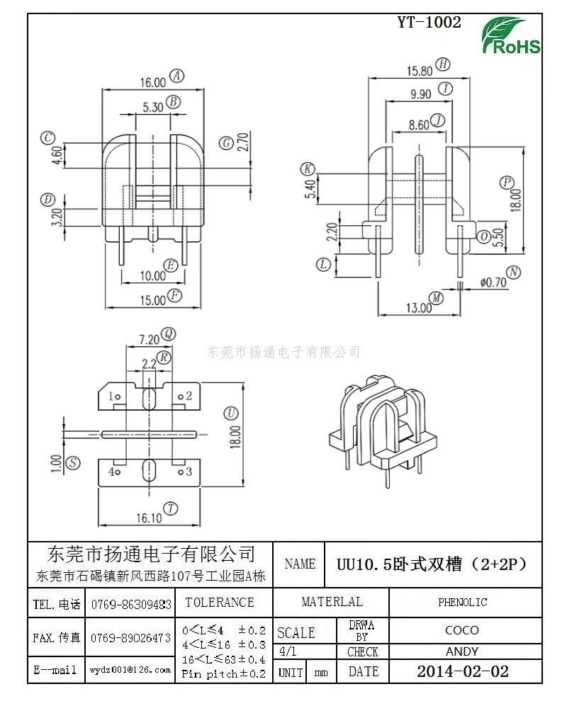 UU10.5变压器骨架UU10.5电木骨架UU10.5高频骨架 卧式双槽2+2P YT-1002