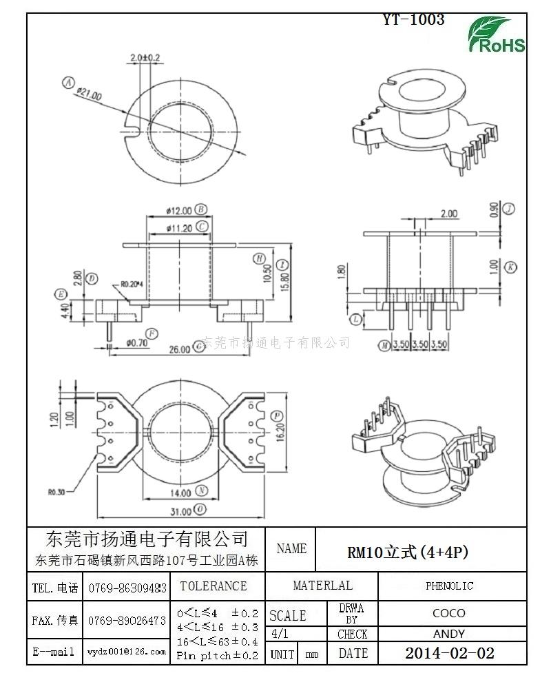RM10变压器骨架RM10电木骨架RM10高频骨架 立式4+4P YT-1003