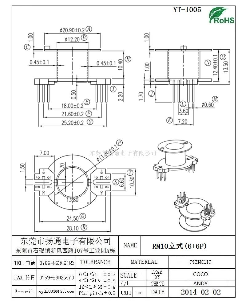 RM10变压器骨架RM10电木骨架RM10高频骨架 立式6+6P YT-1005