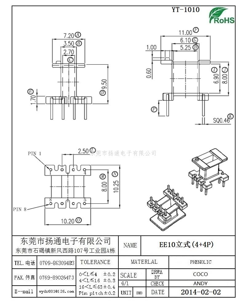 EE10变压器骨架EE10电木骨架EE10高频骨架 立式4+4P YT-1010