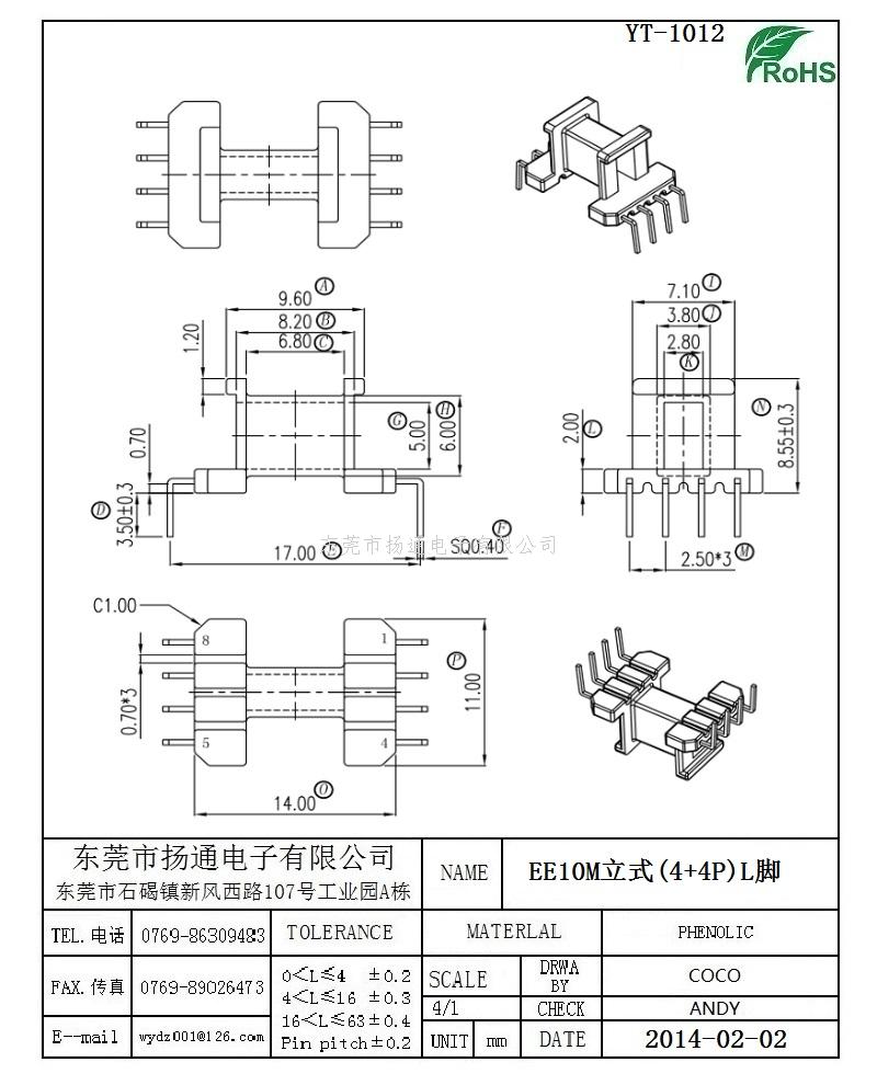 EE10M变压器骨架EE10M电木骨架EE10M高频骨架 立式4+4PL脚 YT-1012