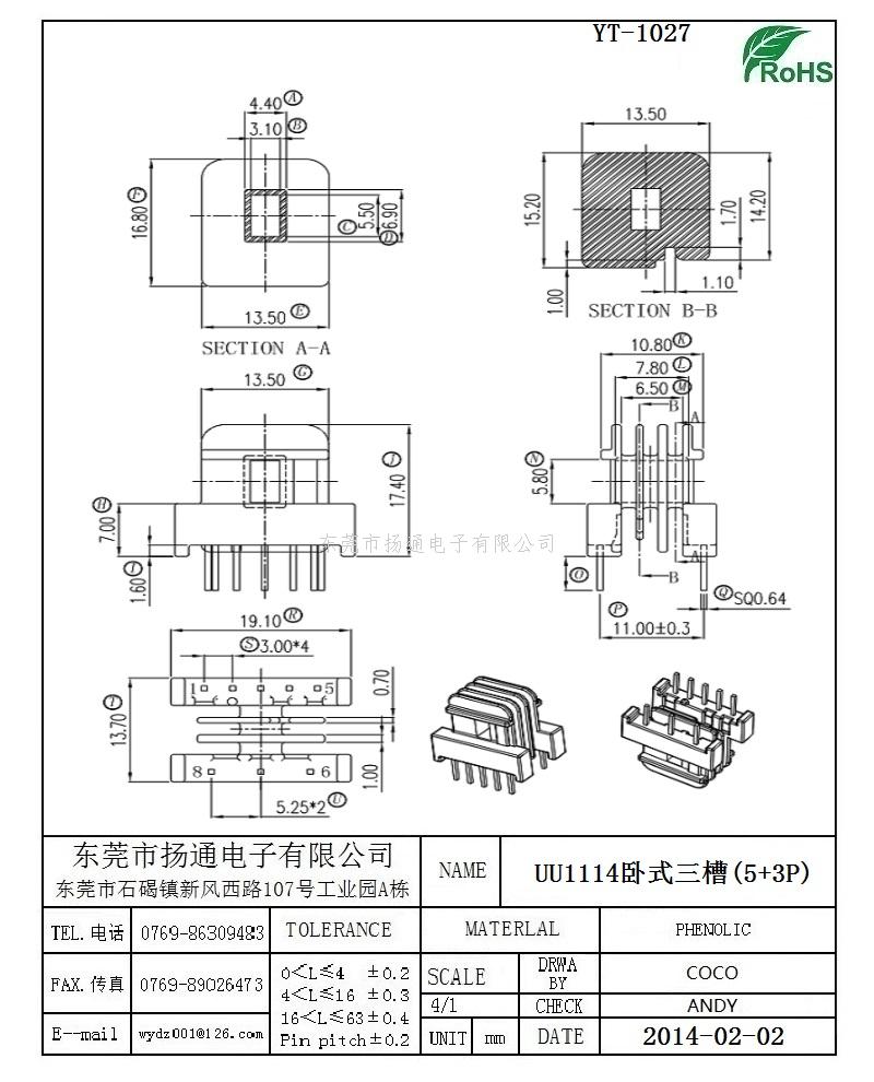 UU1114变压器骨架UU1114电木骨架UU1114高频骨架 卧式三槽5+3P YT-1027