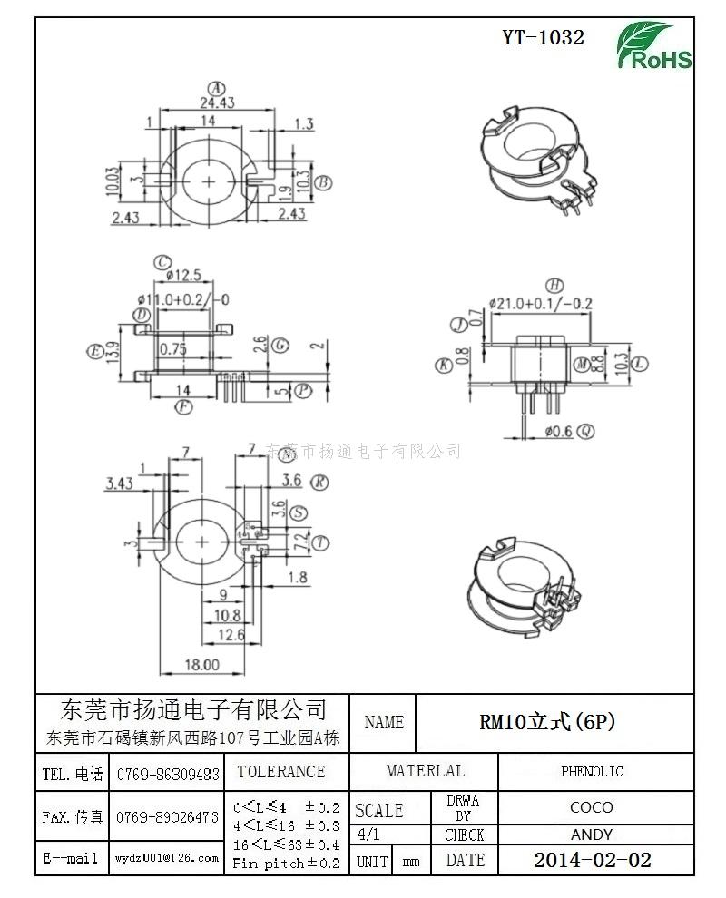 RM10变压器骨架RM10电木骨架RM10高频骨架 立式6P YT-1032