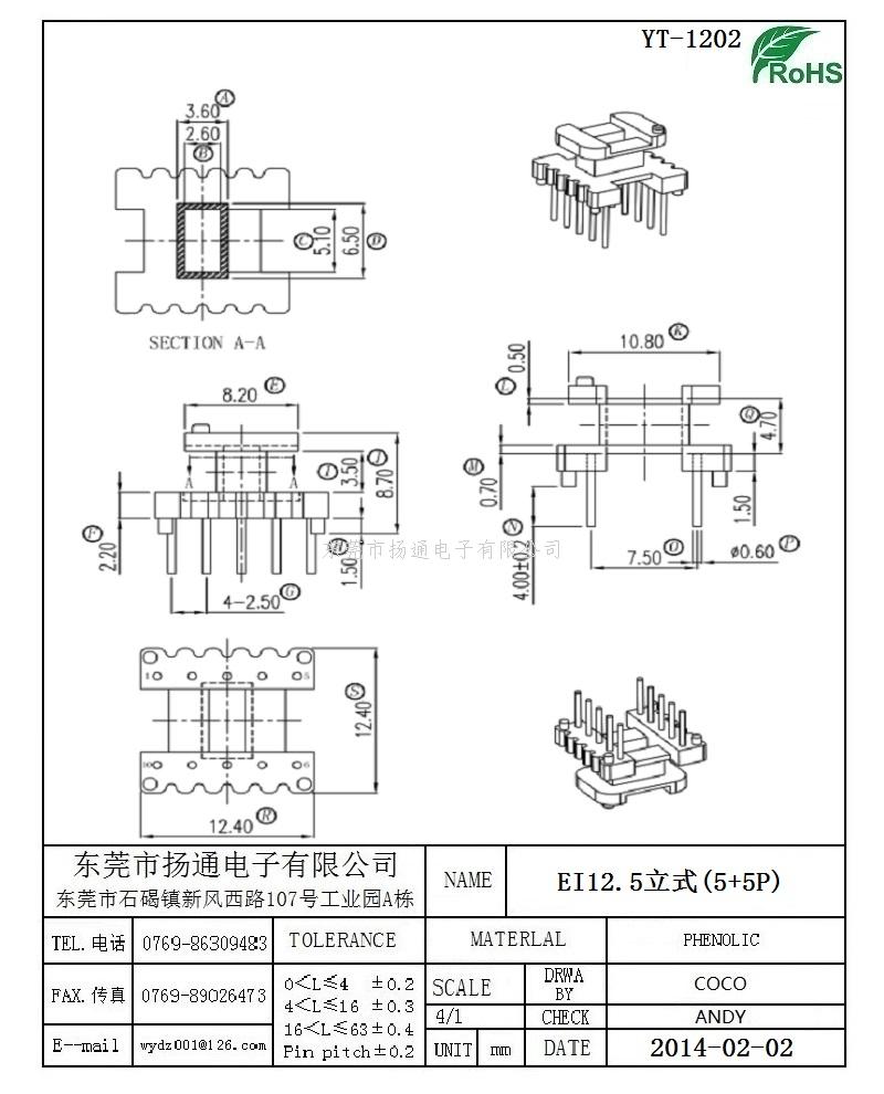EI12.5变压器骨架EI12.5电木骨架EI12.5高频骨架 立式5+5P YT-1202