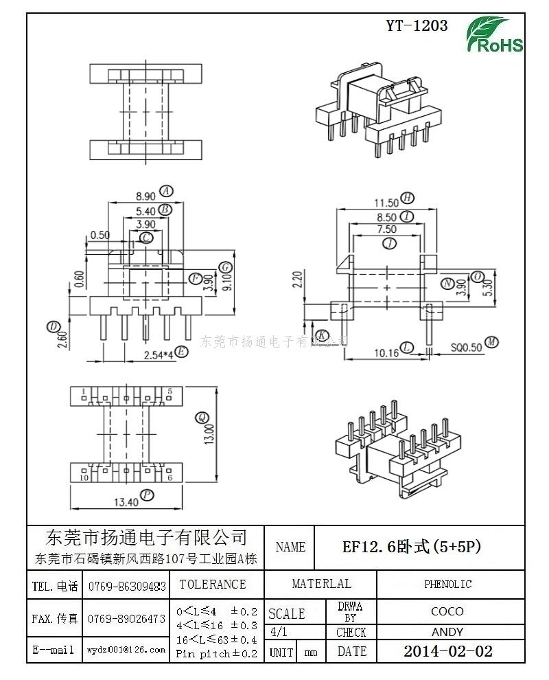 EF12.6高频骨架EF12.6电木骨架EF12.6变压器骨架 卧式5+5P YT-1203
