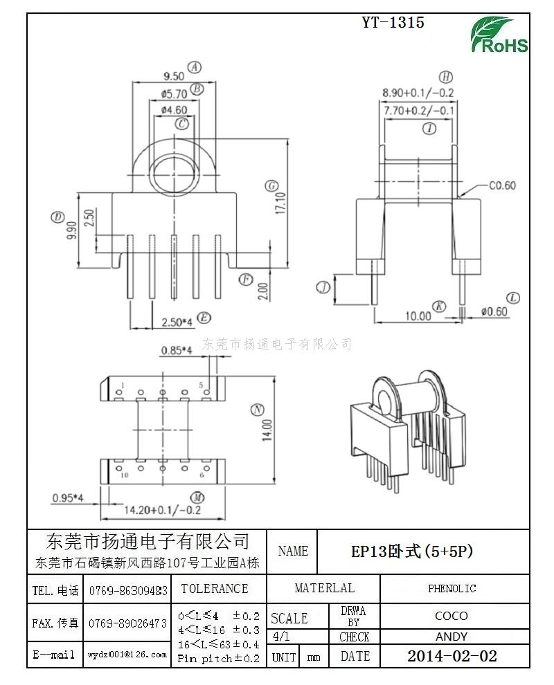 [上一个:EP1305变压器骨架EP1305电木骨架EP1305高频骨架 卧式5+5P YT-1316]