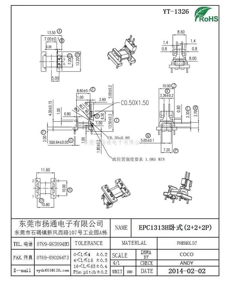 EPC1313H变压器骨架EPC1313H电木骨架EPC1313H高频骨架 卧式2+2+2P YT-1326