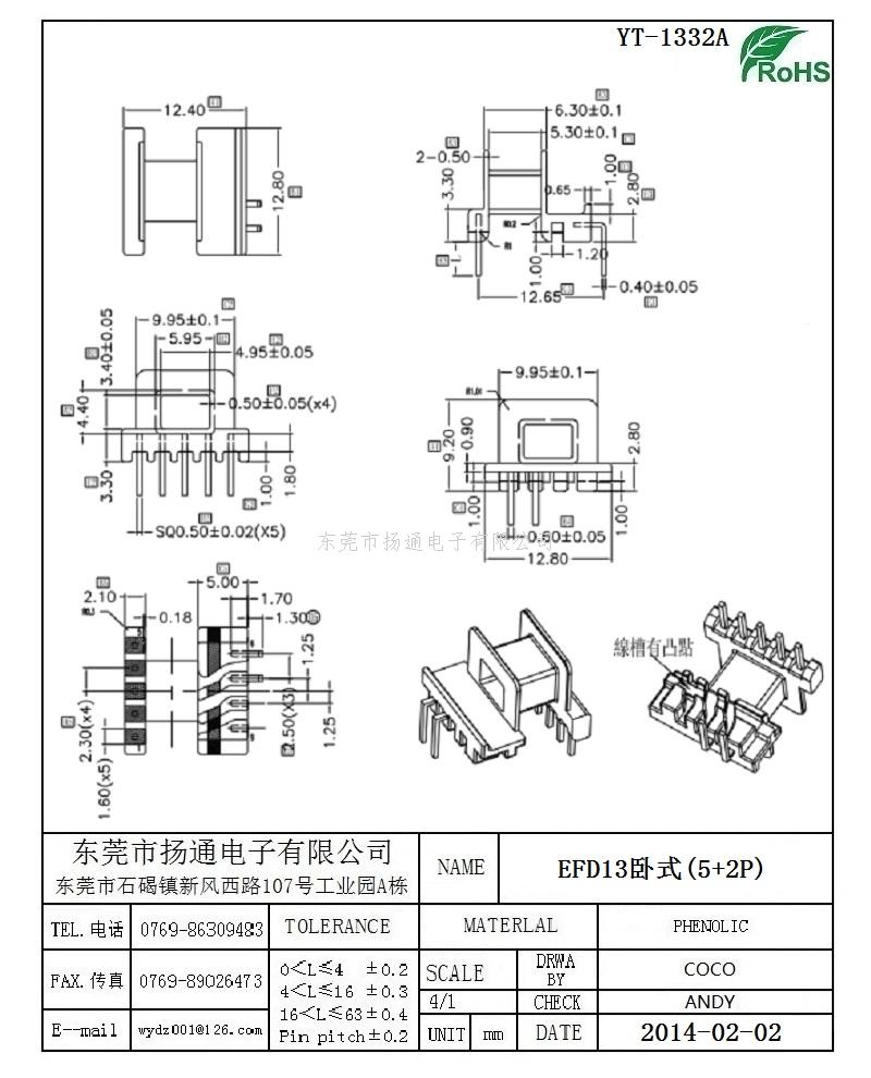 EFD13变压器骨架EFD13电木骨架EFD13高频骨架 卧式5+2P YT-1332A