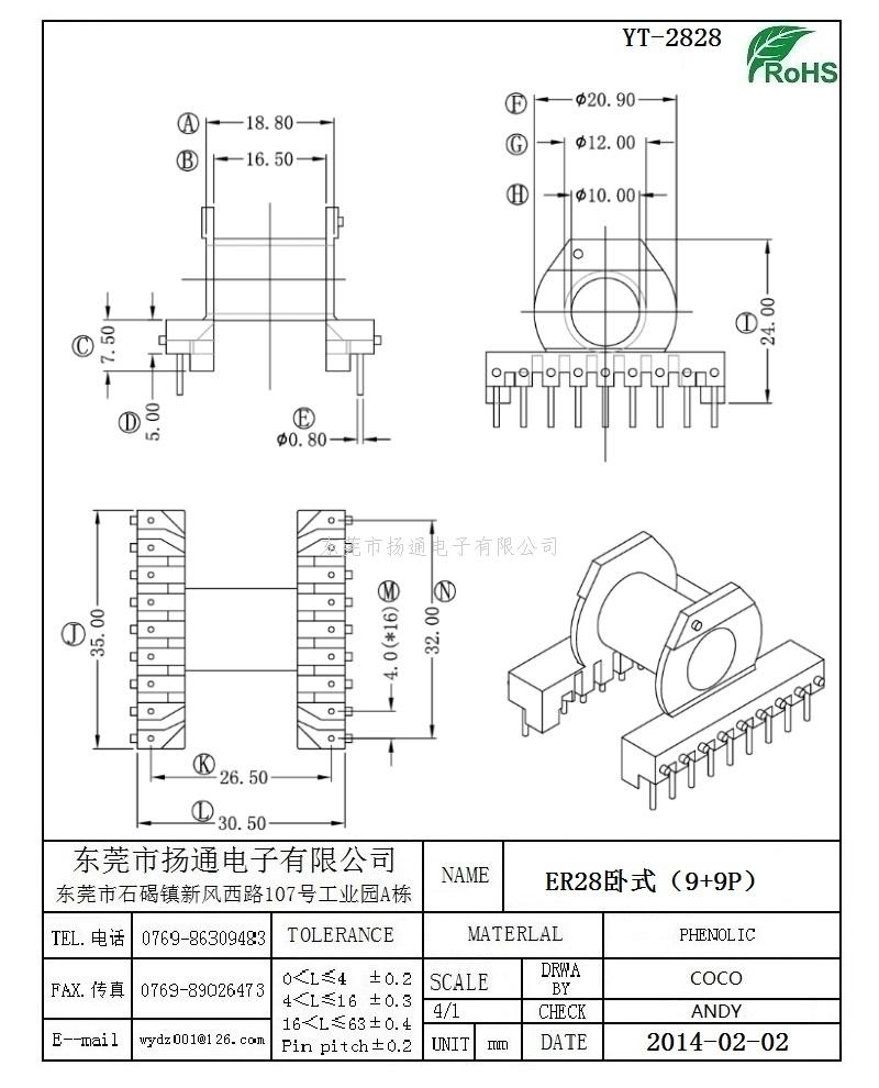 ER28变压器骨架ER28电木骨架ER28高频骨架 卧式9+9P YT-2828