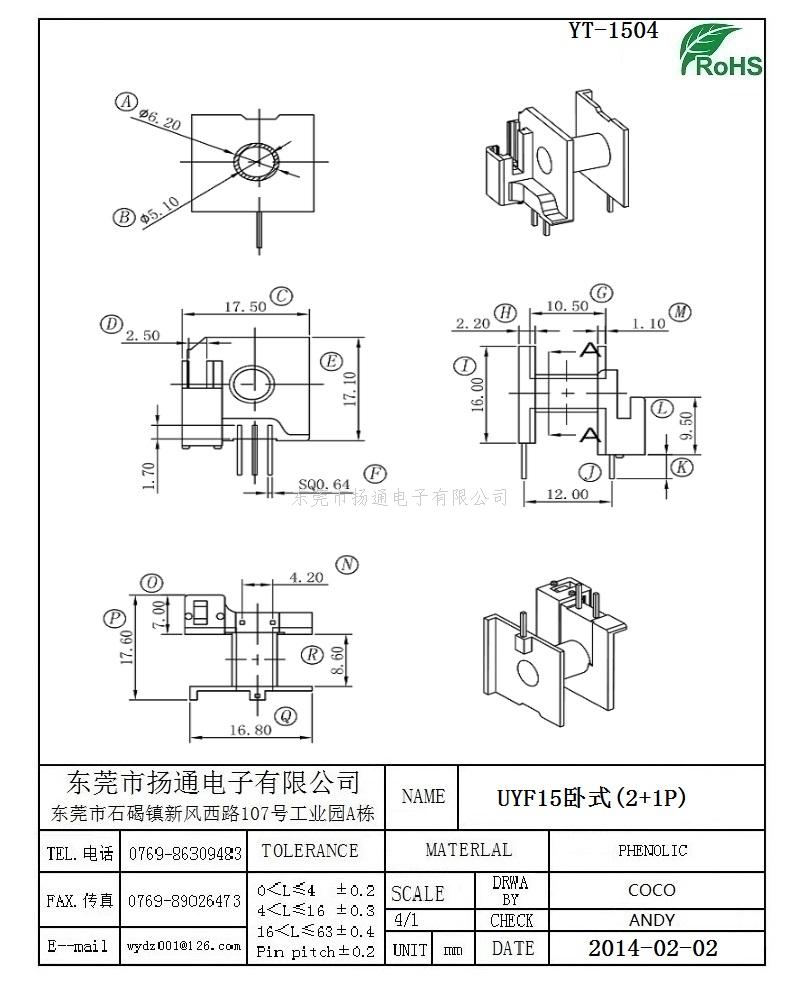 UYF15变压器骨架UYF15电木骨架UYF15高频骨架 卧式2+1P YT-1504