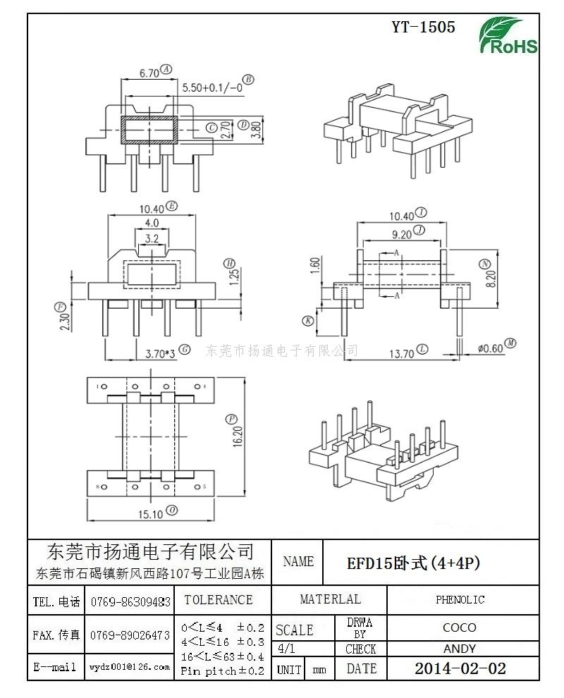 EFD15变压器骨架EFD15电木骨架EFD15高频骨架 卧式4+4P YT-1505