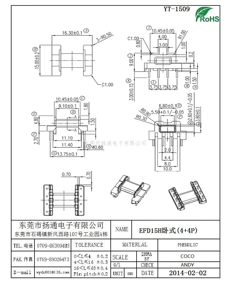EFD15H变压器骨架EFD15H电木骨架EFD15H高频骨架 卧式4+4P YT-1509