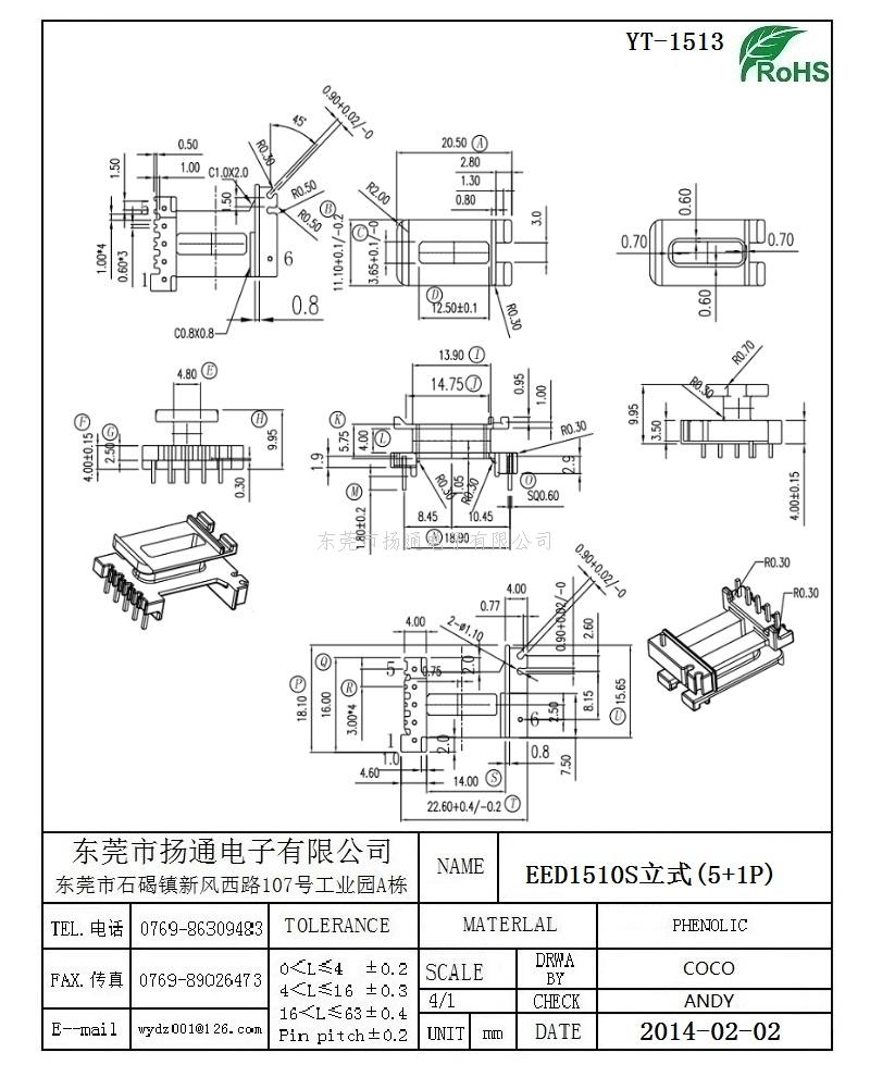 EED1510S变压器骨架EED1510S电木骨架EED1510S高频骨架 立式5+1P YT-1513