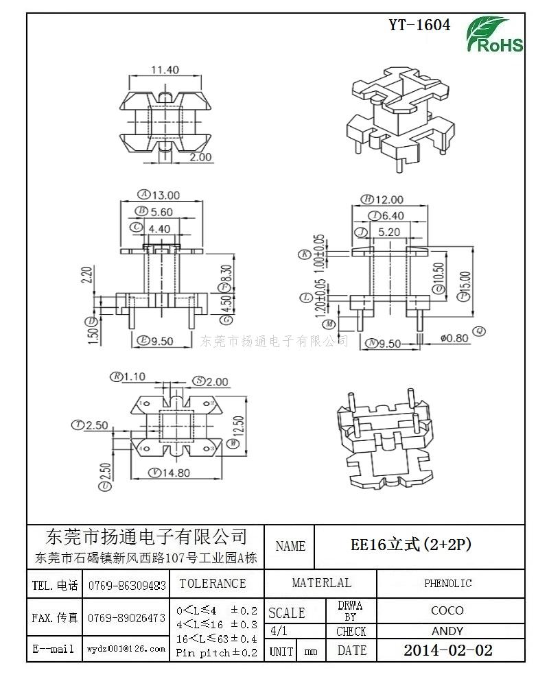 EE16变压器骨架EE16电木骨架EE16高频骨架 立式2+2P YT-1604