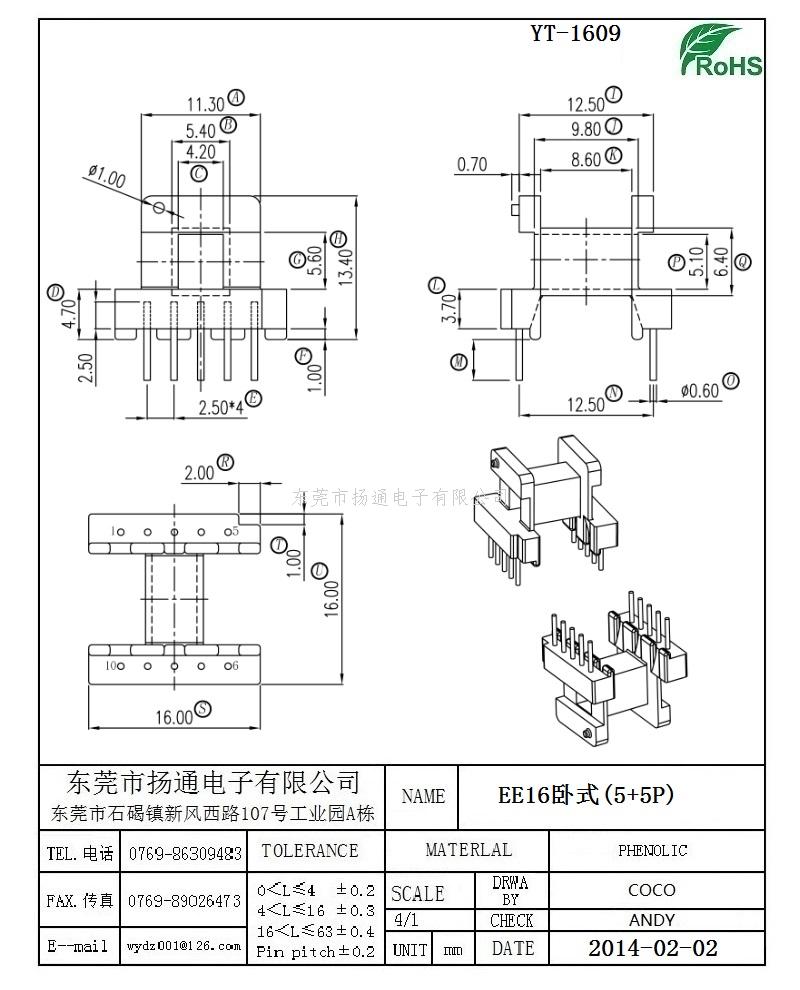 EE16变压器骨架EE16电木骨架EE16高频骨架 卧式5+5P YT-1609