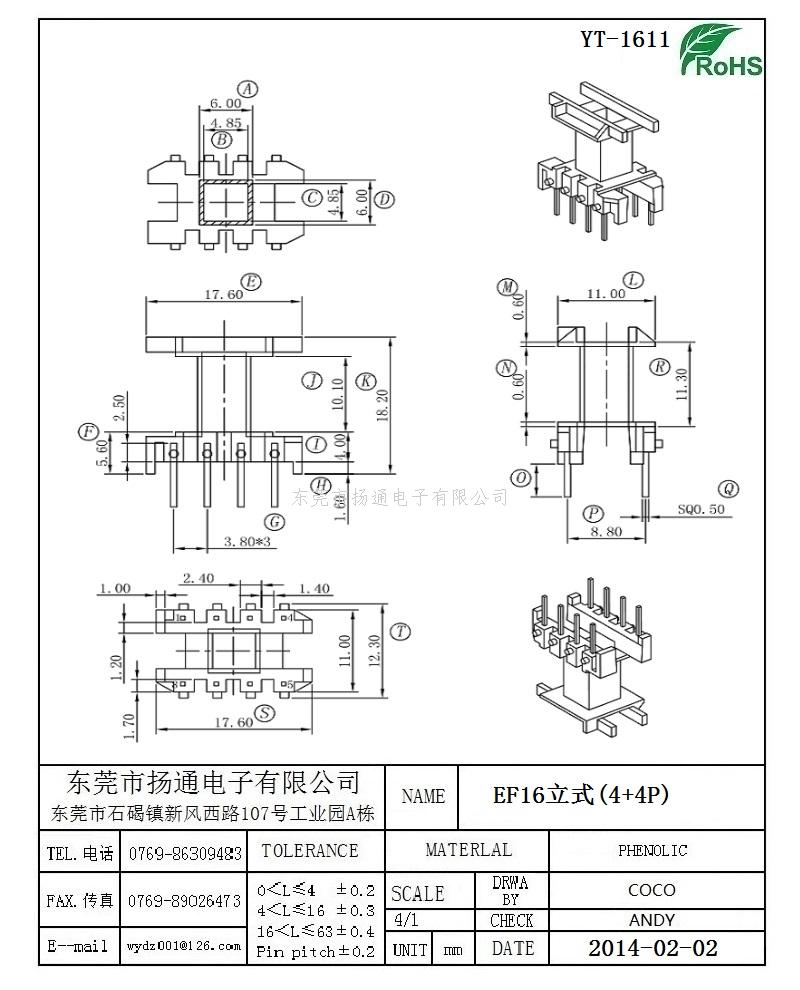 EF16变压器骨架EF16电木骨架EF16高频骨架 立式4+4P YT-1611