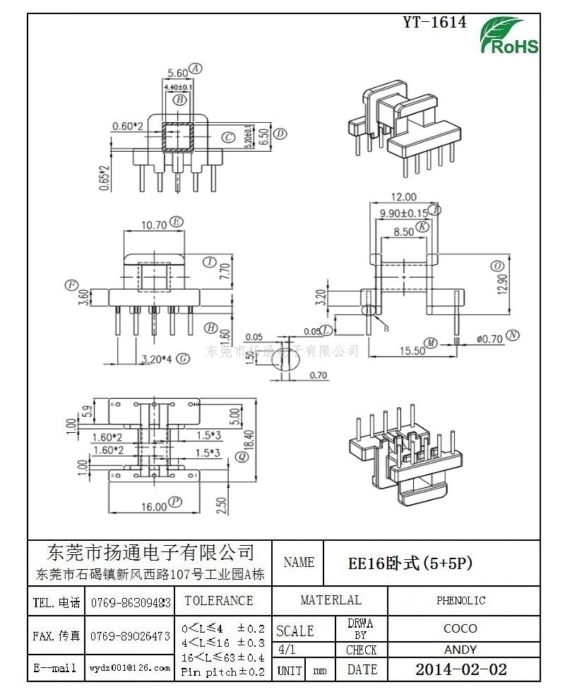 EE16变压器骨架EE16电木骨架EE16高频骨架 卧式5+5P YT-1614