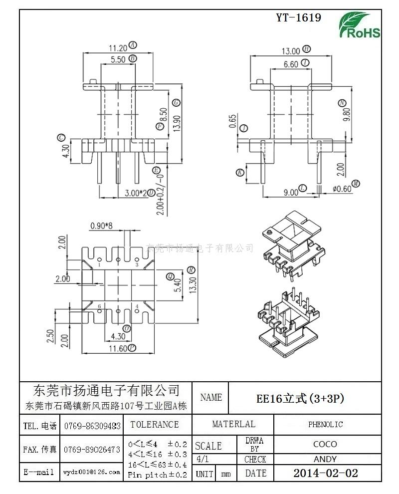 EE16变压器骨架EE16电木骨架EE16高频骨架 立式3+3P YT-1619
